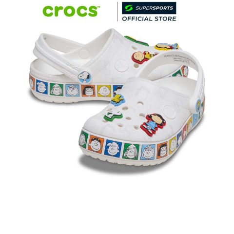 CROCS Crocband Peanuts Clog Toddler รองเท้าลำลองเด็กสุดน่ารักจากคอลเลกชัน Peanuts™ ที่ชาวแก๊งค์มากันครบ! โดดเด่นด้วยลายการ์ตูนบนอัปเปอร์ และลวดลายสีสันสดใสรอบพื้นรองเท้า ไม่ว่าจะเป็น Peppermint Patty, Marcie, Franklin และเพื่อนๆ อีกมากมาย เติมความสนุกยิ่งขึ้นด้วยจี้ Jibbitz™ ตัวละครสุดฮิตอย่าง Charlie Brown, Snoopy, Lucy, Linus, Sally และ Woodstock ใส่แล้วน่ารักสะดุดตา เหมาะทั้งใส่เที่ยว ใส่เล่น หรือใส่ในชีวิตประจำวัน