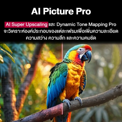 AI Picture Pro และ AI Super Upscaling 4K ปรับภาพให้เหมาะกับคอนเทนต์อัตโนมัติ เสริมมิติด้วย Local Dimming และ Dynamic Tone Mapping Proรองรับ HDR & โหมดดูหนังแบบผู้กำกับตั้งใจ