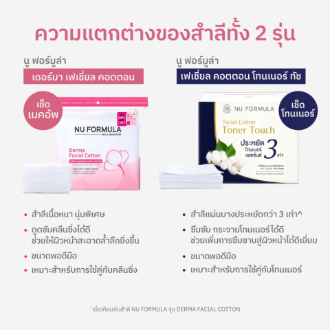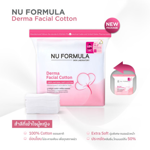 [แพ็คคู่] Nu Formula Derma Facial Cotton 200 pcs. สำลีแผ่นเช็ดหน้าเกรดพรีเมียม เนื้อนุ่มพิเศษจากใยฝ้ายธรรมชาติ 100% ช่วยทำความสะอาดผิวหน้าและเช็ดเครื่องสำอางได้อย่างหมดจดแบบอ่อนโยน ไม่บาดผิว ไม่ระคายเคือง และไม่เป็นขุยง่าย เหมาะสำหรับทุกสภาพผิว แม้ผิวบอบบาง