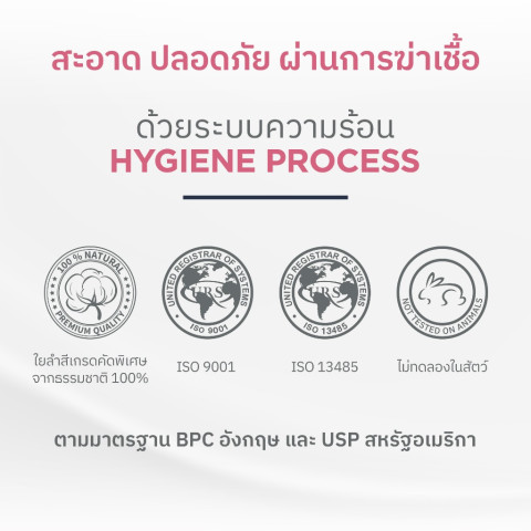 ผลิตจากใยฝ้ายธรรมชาติ 100% สัมผัสนุ่มพิเศษ ถนอมผิวหน้า