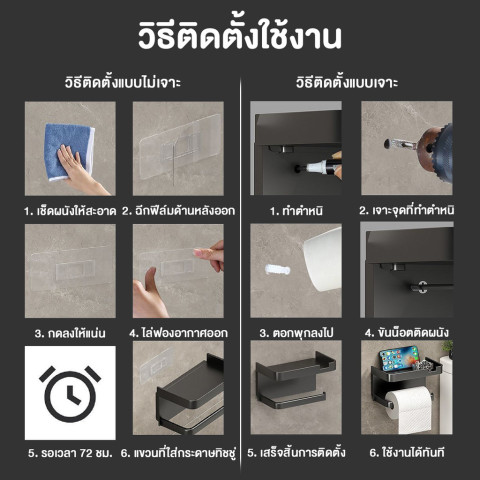 การติดตั้ง: สติ๊กเกอร์กาวแข็งแรง แบบไร้ตะปู ไร้รอย