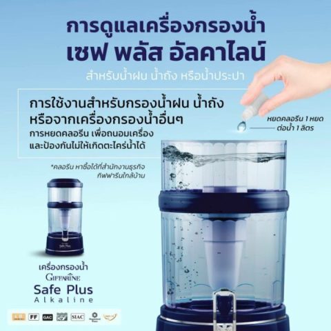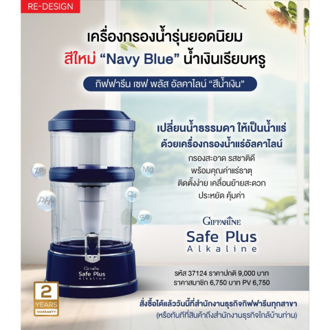 เครื่องกรองน้ำกิฟฟารีน เซฟพลัส (Safe Plus) อัลคาไลน์ ตัวช่วยยกระดับคุณภาพน้ำดื่มให้ “สะอาด ปลอดภัย และทรงคุณค่า” ด้วยเทคโนโลยีการกรองแบบหลายชั้นที่ช่วยเติมแร่ธาตุ ปรับสมดุลความเป็นด่าง และลดกลิ่น/คลอรีน/สิ่งปนเปื้อน เพื่อให้คุณและครอบครัวได้ดื่มน้ำที่ดีต่อสุขภาพในทุกวัน