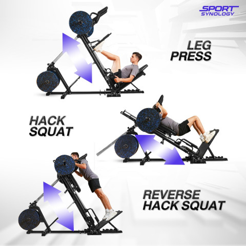 SPORT SYNOLOGY LH200 - 3 in 1 เครื่องเล่นขาสาย Heavy Duty ที่รวมท่าเด็ดไว้ในเครื่องเดียว ปรับองศาได้ 30-60 องศา เล่นได้ครบทั้ง Leg Press, Hack Squat และ Reverse Hack Squat เหมาะสำหรับโฮมยิมและฟิตเนสที่ต้องการความแข็งแรง มั่นคง และความปลอดภัยในการฝึกขาแบบจริงจัง