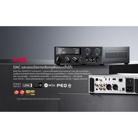 ยกระดับชุดฟังบนโต๊ะทำงานให้ “ครบจบในเครื่องเดียว” ด้วย FiiO K15 DAC/AMP ตั้งโต๊ะระดับไฮเอนด์ ที่รวมพลังของชิป AKM AK4497S แบบคู่ (x2) พร้อมเทคโนโลยี VELVET SOUND ให้โทนเสียงเป็นธรรมชาติ รายละเอียดชัด เวทีเสียงโปร่ง และบิดเบือนต่ำ ตอบโจทย์ทั้งสายหูฟังเต็มขนาดและ IEM ด้วยภาคขยาย Class-AB แยกอิสระ กำลังขับสูงถึง 3000mW+3000mW ฟังสนุก หนักแน่น คุมไดรเวอร์ได้มั่นใจ