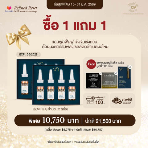 1 แถม 1 VENN (เวนน์) VENN REGENERATIVE ผลิตภัณฑ์แอมพูลฟื้นฟูเร่งด่วน ด้วยนวัตกรรมพลังเซลล์ต้นกำเนิดผิวใหม่ ช่วยปลุกผิวให้ดูอิ่มฟู เรียบเนียน และดูสุขภาพดีในเวลาอันรวดเร็ว เหมาะสำหรับช่วงที่ผิวอ่อนล้า โทรม ขาดน้ำ หรือหลังเผชิญมลภาวะ/ความเครียดสะสม ให้คุณบำรุงแบบเข้มข้นเสมือนยกสปามาไว้ที่บ้าน พร้อมความคุ้มค่าแบบ 1 แถม 1 ในเซ็ตเดียว