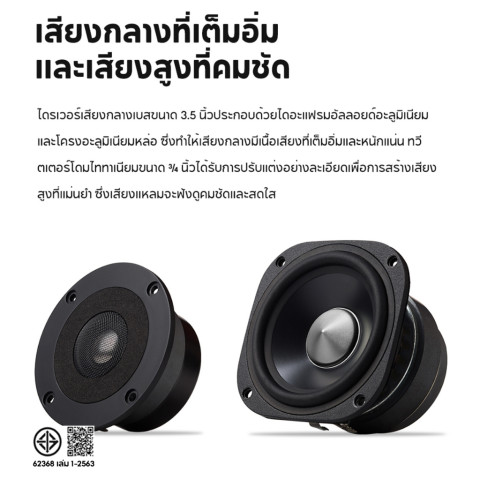 ชุดไดรเวอร์คุณภาพ ครบทั้งแหลม-กลาง-เบส เพื่อบาลานซ์เสียงที่ฟังสบายและมีพลัง