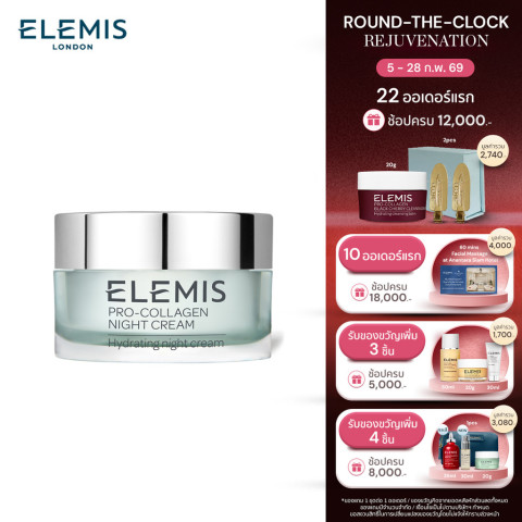 Elemis Pro-Collagen Night Cream 50 ml. ครีมบำรุงผิวหน้าสำหรับกลางคืนระดับพรีเมียม ราคา 6,000.00 บาท ออกแบบมาเพื่อช่วงเวลาฟื้นฟูผิวในตอนกลางคืนโดยเฉพาะ ช่วยเติมความอวบอิ่มให้ผิว พร้อมดูแลความหย่อนคล้อยบริเวณแก้ม คาง และกรอบหน้า ให้ผิวดูเรียบเนียน กระชับ และดูอ่อนเยาว์ขึ้นเมื่อใช้อย่างต่อเนื่อง