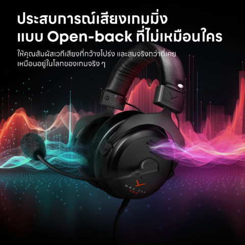 เสียงแม่นยำแบบเปิดหลัง แยกตำแหน่งเสียงเชิงพื้นที่ได้ยอดเยี่ยม ช่วยจับทิศทางฝีเท้า/กระสุนได้ไวขึ้น เหมาะกับเกม FPS และเกมแข่งขัน