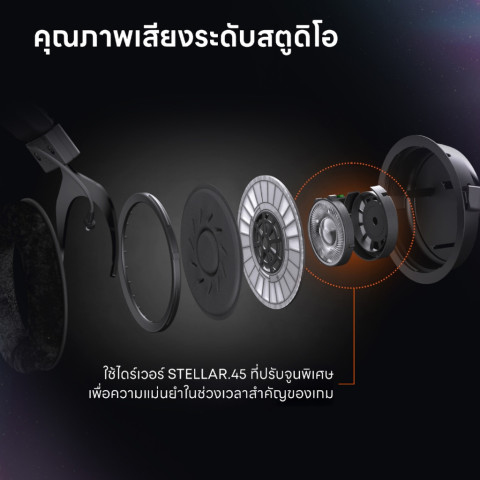 ไดรเวอร์ STELLAR.45 ให้รายละเอียดเสียงคมชัด ย่านความถี่กว้าง 5–40,000 Hz ทั้งแรงปะทะและรายละเอียดปลายเสียงครบ