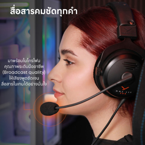 Beyerdynamic MMX 330 Pro Gaming Headset Black หูฟังเกมมิ่งระดับโปรที่ให้เสียงสไตล์สตูดิโอ พร้อมเวทีเสียงแบบเปิดหลัง (Open-Back) เพื่อการแยกทิศทางและมิติเสียงในเกมที่แม่นยำ เหมาะทั้งเล่นเกมจริงจังและฟังเพลงคุณภาพสูง ใช้งานได้ทรงพลังทั้งบน PC และคอนโซลด้วยไดรเวอร์ STELLAR.45 แบบความต้านทานต่ำ