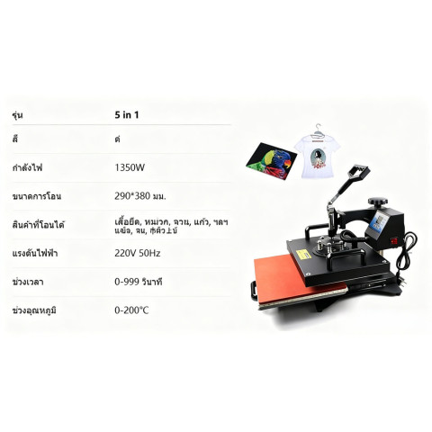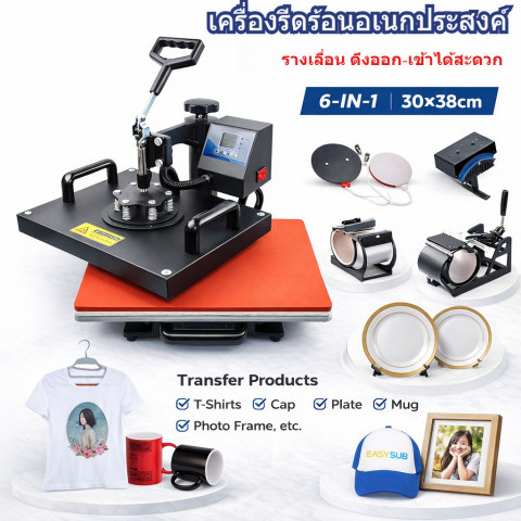 เครื่องรีดร้อนอเนกประสงค์ 6-IN-1 แผ่น 30x38 ซม. เครื่องสกรีนเสื้อ ปรับแรงกดได้ ระบบดิจิทัล คือเครื่องรีดร้อนครบจบในเครื่องเดียว เหมาะทั้งมือใหม่ที่เริ่มทำงาน DIY ไปจนถึงร้านค้าและธุรกิจขนาดเล็กที่ต้องการงานสกรีนสวย คม และสม่ำเสมอ มาพร้อมแผ่นรีดขนาดใหญ่ 30×38 ซม. รองรับงานพิมพ์ลายได้หลากหลาย ช่วยประหยัดทั้งพื้นที่และต้นทุน ไม่ต้องซื้อหลายเครื่อง
