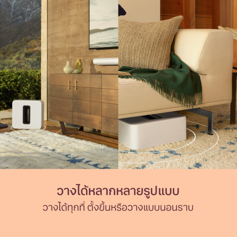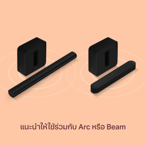 เพิ่มมิติของเสียงย่านต่ำเมื่อจับคู่กับซาวด์บาร์/ลำโพง Sonos ช่วยสร้างเวทีเสียงที่ใหญ่ขึ้น และทำให้เอฟเฟกต์ในภาพยนตร์สมจริงยิ่งกว่าเดิม