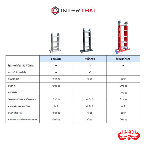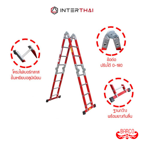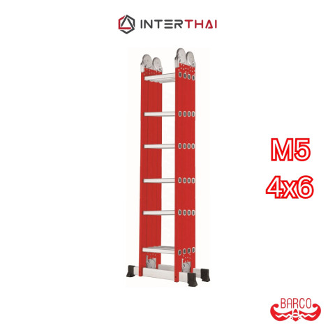 BARCO บันไดอเนกประสงค์ไฟเบอร์กลาส รุ่น M5 4x6 (24 ขั้น) แข็งแรง ปลอดภัย ปรับใช้งานได้หลากหลาย เหมาะทั้งงานช่าง งานติดตั้ง งานซ่อมบำรุง และงานใช้งานทั่วไปในบ้านหรือไซต์งาน ด้วยโครงสร้างคุณภาพ รองรับน้ำหนักได้สูงสุด 150 กก. และพับเก็บได้ ประหยัดพื้นที่ เคลื่อนย้ายสะดวก