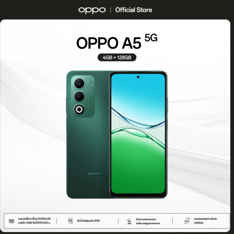 [Online Exclusive] OPPO A5 5G (4+128G) สมาร์ทโฟนดีไซน์สวย ทนทาน พร้อมสเปกจัดเต็มในราคาคุ้มค่า มาพร้อมการเชื่อมต่อ 5G ความเร็วสูง แบตเตอรี่ใหญ่ 6000 mAh ใช้งานยาวนานทั้งวัน รองรับชาร์จไว 45W ให้คุณกลับมาใช้งานได้อย่างรวดเร็ว เหมาะทั้งการใช้งานทั่วไป เล่นเกม ดูหนัง หรือโซเชียลตลอดวัน