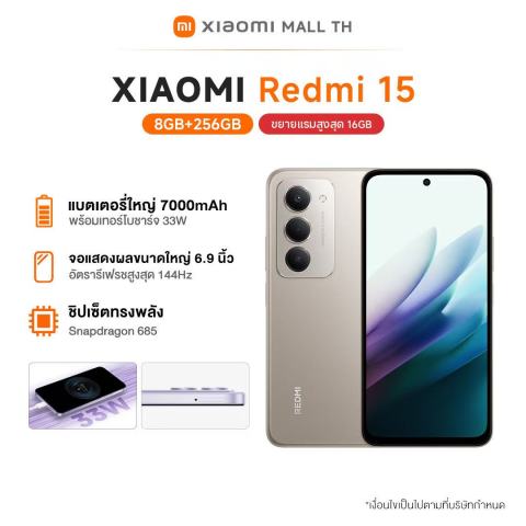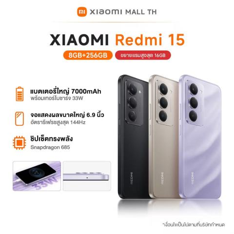 Xiaomi Redmi 15 5G (8GB+256GB) สมาร์ทโฟนรุ่นใหม่ล่าสุดที่ออกแบบมาเพื่อตอบโจทย์ทั้งงานและความบันเทิงครบจบในเครื่องเดียว มาพร้อมแบตเตอรี่ยักษ์ 7000mAh (Typ) ใช้งานยาวนานตลอดวัน ชาร์จไว 33W Fast Charging จอใหญ่ 6.9 นิ้ว FHD+ ให้ภาพคมชัดเต็มตา และชิปเซ็ต Snapdragon 6S Gen 3 รองรับ 5G ให้ประสิทธิภาพลื่นไหลทุกการใช้งาน