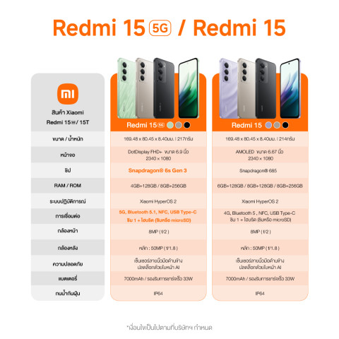 สำหรับผู้ที่มองหาสมาร์ทโฟนจอใหญ่ แบตอึด ชาร์จไว ใช้งานลื่นในงบประมาณไม่สูง Xiaomi Redmi 15 5G (8GB+256GB) คือหนึ่งในตัวเลือกที่คุ้มค่าที่สุด ทั้งด้านสเปคและราคาที่น่าสนใจ