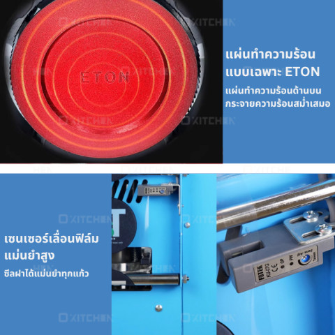 ใช้ไฟบ้านมาตรฐาน 220V-50Hz กำลังไฟ 340 วัตต์ ให้ความร้อนและแรงกดที่พอดี ทำให้ฟิล์มซีลติดแน่น สวยงาม ไม่ละลายเลอะเทอะ และช่วยประหยัดพลังงานเมื่อใช้งานต่อเนื่องทั้งวัน