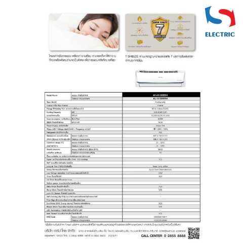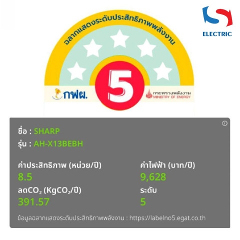 ประมาณค่าใช้จ่ายไฟฟ้าต่อปี: 9,628 บาท (โดยประมาณ ขึ้นอยู่กับการใช้งานจริง)