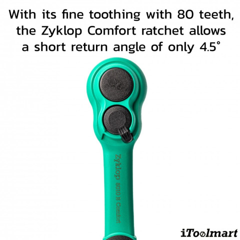 ชุดนี้มาพร้อมลูกบ๊อกซ์และอุปกรณ์เสริมครบชุด ทั้งหัวหกเหลี่ยม หัว TORX หัวแฉก พร้อมก้านต่อและอะแดปเตอร์หลากหลาย ขับเคลื่อนด้วยดอกเฟือง Zyklop Ratchet แบบฟันละเอียด 80 ฟัน ให้มุมกลับสั้นเพียงประมาณ 4.5° ทำงานได้คล่องตัวแม้ในพื้นที่แคบ ใช้งานง่าย เปลี่ยนทิศทางหมุนได้รวดเร็วเพียงกดปุ่มเดียว หัววงล้อหมุนได้อิสระพร้อมตำแหน่งล็อก 5 ตำแหน่ง ช่วยให้คุณเลือกมุมทำงานได้เหมาะสมกับทุกสถานการณ์