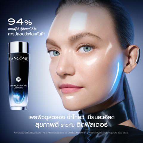 หลังทำความสะอาดผิวหน้า ลูบไล้ LANCOME GENIFIQUE ULTIMATE LOTION ให้ทั่วใบหน้าและลำคอ สามารถใช้ด้วยมือหรือสำลี