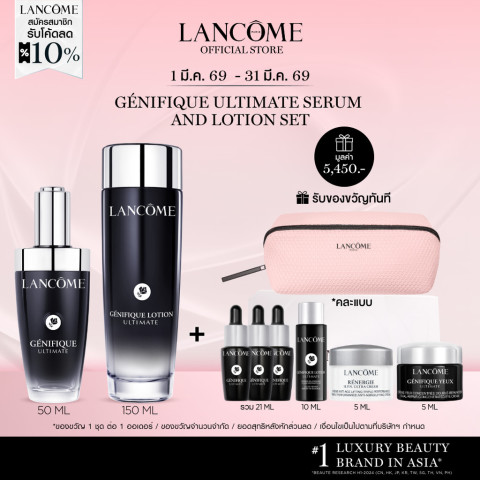 สัมผัสระดับใหม่ของการฟื้นฟูผิวกับ [Special Set] LANCOME GENIFIQUE ULTIMATE, DUAL-REPAIR AUGMENTED SERUM 50 ML & LOTION 150ML เซ็ตดูโอสุดล้ำที่ออกแบบมาเพื่อซ่อมแซม ฟื้นบำรุง และปลุกประกายผิวให้กลับมาดูอ่อนเยาว์ สุขภาพดี ราวกับเพิ่งออกจากคลินิกดูแลผิวในหนึ่งเดียว