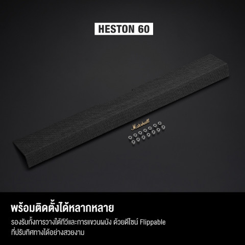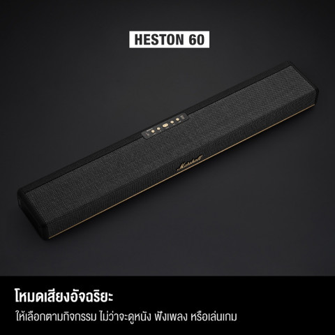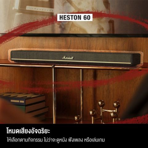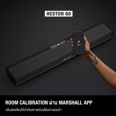[NEW ARRIVAL] MARSHALL Heston 60 Black ซาวน์บาร์ระดับพรีเมียมที่ยกระดับเสียงจากทีวีและเพลงโปรดของคุณให้ทรงพลังเกินตัว ดีไซน์กระทัดรัดแต่ให้พลังเสียงเต็มห้อง ออกแบบมาเพื่อไลฟ์สไตล์คนเมือง ไม่ว่าจะเป็นห้องนอน คอนโด หรือห้องนั่งเล่นขนาดจำกัด ก็ยังสัมผัสประสบการณ์เสียงแบบโฮมเธียเตอร์ได้อย่างสมจริง