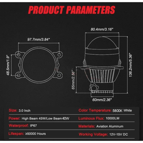 แสงสว่างจัด ใช้แทนไฟหน้าได้ ไฟต่ำ 30 วัตต์ / ไฟสูง 40 วัตต์ ให้แสงพุ่งไกล มองทางชัด ไม่ฟุ้ง ไม่รบกวนสายตาผู้ร่วมทาง