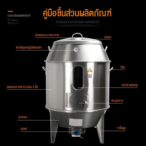 เตาอบย่างเนื้อหนาพิเศษ เตาอบเป็ด 60/80 แบบเตาอบสองชั้น (สแตนเลส) พร้อมมาตรวัดอุณหภูมิ & หน้าต่างมองเห็น ในราคา 8,949.00 บาท เหมาะสำหรับร้านอาหาร/ร้านเป็ดย่างที่ต้องการเตาใช้งานหนัก อบสุกสม่ำเสมอ และควบคุมความร้อนได้ง่าย ตัวเตาออกแบบให้ทนทานด้วยสแตนเลสคุณภาพ พร้อมฉนวนกันความร้อนรอบตัว ช่วยประหยัดพลังงานและยืดอายุการใช้งาน