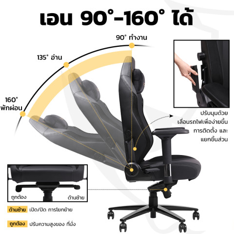 ปรับเอนพนักพิง 90°-160° นั่งทำงานจริงจัง หรือเอนพักผ่อนก็สบาย