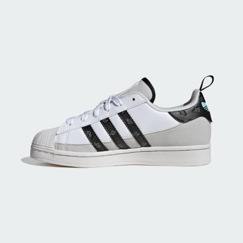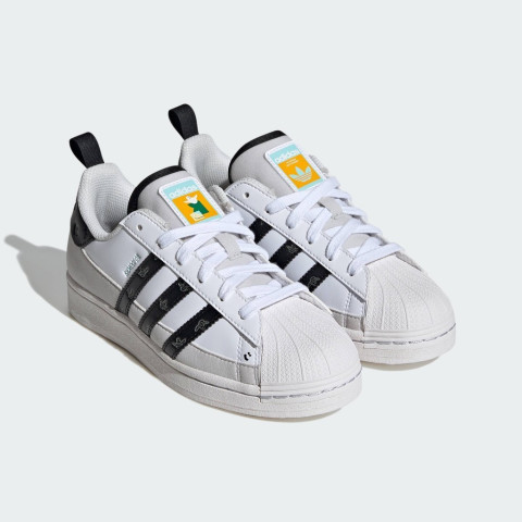 adidas Lifestyle Shmoofoil Superstar Shoes Kids Unisex White IG6842 รองเท้าสไตล์ไอคอนิกที่ผสานกลิ่นอายสปอร์ตเข้ากับความเท่แบบสเก็ตอย่างลงตัว สำหรับเด็กและวัยรุ่นที่อยากได้ลุคคลาสสิกแต่มีลูกเล่นไม่เหมือนใคร โดดเด่นด้วยดีไซน์ Shell Toe อันเป็นเอกลักษณ์ พร้อมกราฟิกสนุก ๆ ที่ออกแบบโดยตำนานสเก็ตและศิลปิน Mark Gonzales บนแถบ 3-Stripes และแถบส้น เพิ่มความมีคาแรกเตอร์ให้ทุกชุดในทันที