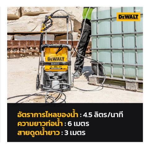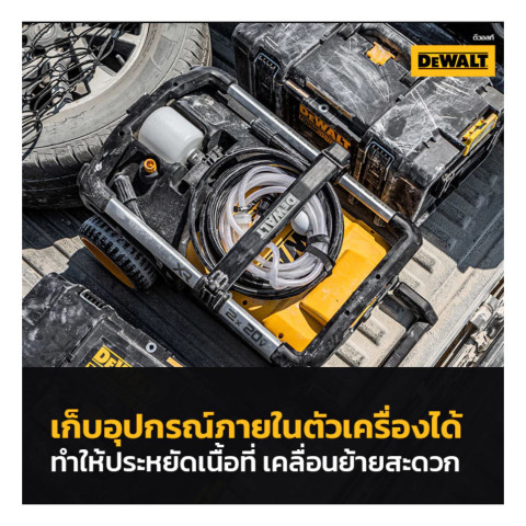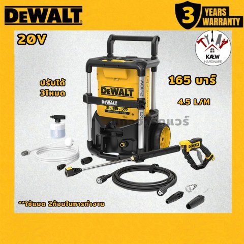 DEWALT เครื่องฉีดน้ำแรงดันสูงไร้สาย 165 บาร์ 20V รุ่น DCMPW1600N-KR (ใช้แบต 2 ก้อน)