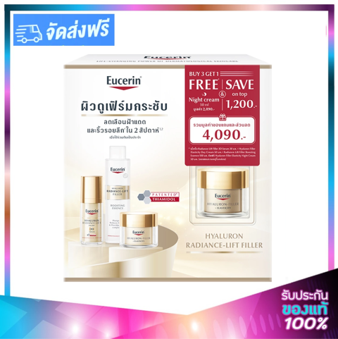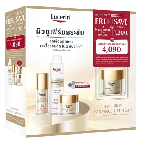 Eucerin Hyaluron Radiance-Lift Filler SET เซ็ตบำรุงผิวครบขั้นตอนเพื่อผิวดูอิ่มฟู กระจ่างใส และแน่นกระชับในทุกวัน รวมไอเท็มขายดีจากไลน์ Hyaluron Radiance-Lift ที่ช่วยเติมความชุ่มชื้นลึก พร้อมดูแลริ้วรอยและความหมองคล้ำ ให้ผิวดูเรียบเนียน มีมิติ และเปล่งประกายสุขภาพดี