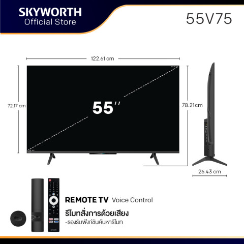 ใหม่ New 2026 SKYWORTH QD-Mini LED TV 55" รุ่น 55V75 Google TV ราคา 17,016.30 บาท ทีวีจอ 55 นิ้วที่ออกแบบมาเพื่อ “ดูชัดในทุกสภาพแสง” ด้วยเทคโนโลยี Nexo™ QD-Mini LED (QLED + Mini LED) ผสานการควบคุมแสงแบบ Full Array Local Dimming ให้ดำลึก ไฮไลต์สว่าง และสีสันสดสมจริง พร้อม Matte Screen Ultra ลดแสงสะท้อนอย่างมีประสิทธิภาพ เหมาะทั้งห้องนั่งเล่นที่มีแสงเข้ามาก และการดูหนังแบบจริงจัง