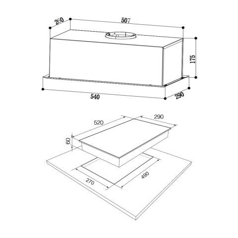 เครื่องดูดควันชนิดติดตั้งในเฟอร์นิเจอร์ ขนาด 54 ซม. งานครัวดูเรียบเนียน
