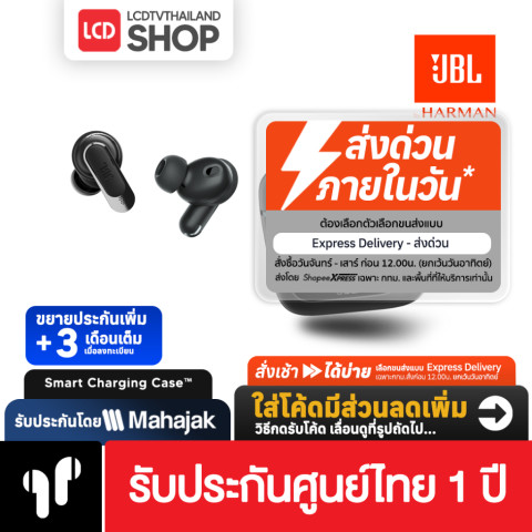 ไดร์เวอร์ JBL PRO-tuned ขนาด 10 มม. ให้เสียงเต็ม รายละเอียดดี พร้อม Immersive JBL Spatial Sound เพื่อมิติเสียงรอบทิศทางเหมือนอยู่ในโรงหนัง คอนเสิร์ต หรือสตูดิโอตัดเสียงรบกวนอัจฉริยะ ใช้ได้ทุกที่