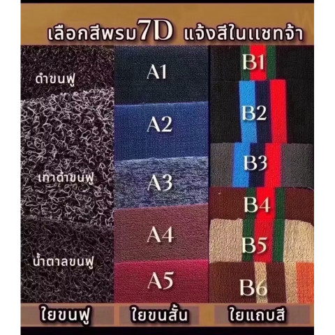 หนัง 6D ลายยอดนิยม: ดำด้ายแดง, ดำด้ายครีม, ดำด้ายดำ, ดำด้ายน้ำเงิน, ดำด้ายส้มเหลือง, กาแฟด้ายครีม, น้ำตาลอ่อน, น้ำตาลเข้ม, ไวน์แดงสด, ไวน์แดงอมม่วง, สีแดงสด, สีน้ำเงิน, สีเทา, สีครีม, สีเขียว, สีชมพู, สีส้ม