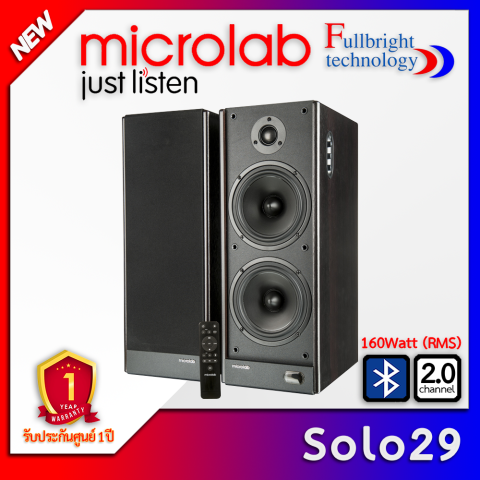 Microlab Solo29 Bluetooth Speaker 2.0 Ch Hi‑Fi Speaker 160W (New 2021) ลำโพงโฮมเธียเตอร์ระบบ 2.0 ที่ให้พลังเสียงเต็มอิ่ม คมชัด และหนักแน่น เหมาะทั้งดูหนัง ฟังเพลง และใช้งานในห้องนั่งเล่นหรือโฮมสตูดิโอขนาดย่อม มาพร้อมการเชื่อมต่อ Bluetooth เพิ่มความสะดวกในการสตรีมเพลงจากมือถือ/แท็บเล็ตแบบไร้สาย พร้อมความมั่นใจด้วย รับประกันศูนย์ 1 ปี ในราคา 7,950.00 บาท