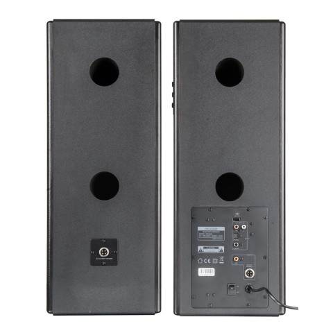 ระบบลำโพง 2.0 เวทีเสียงกว้าง สมดุล เหมาะกับการจัดวางบนโต๊ะทีวีหรือชั้นวางในห้อง