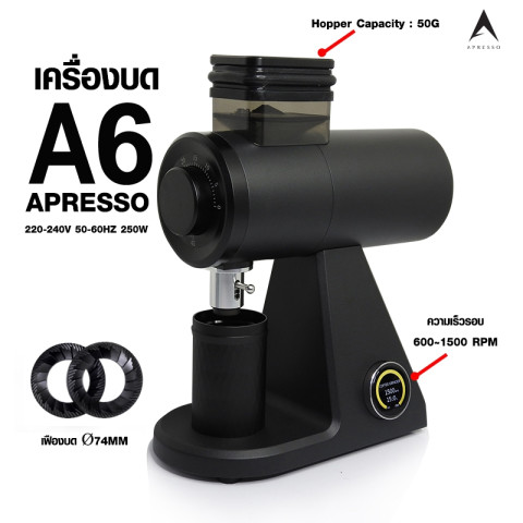 APRESSO A6 'AK74' RPM adjustable Coffee Grinder DLC 74mm by VANIVITO เครื่องบดกาแฟไซซ์กะทัดรัด แต่จัดเต็มด้วยเฟืองบดใหญ่ 74 มม. ให้ประสิทธิภาพระดับจริงจัง เหมาะทั้งโฮมบาริสต้าและร้านที่ต้องการเครื่องบดหน้าบาร์สไตล์ Modern Coffee Bar ใช้งานง่าย ปรับได้ละเอียด ครอบคลุมทุกเมนูตั้งแต่ Dirty / Espresso ไปจนถึง French Press