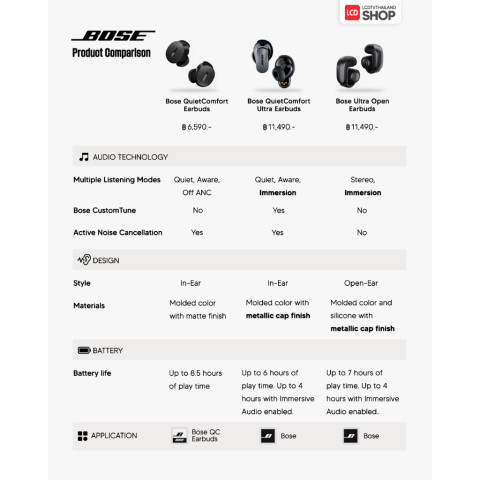 Bose QuietComfort Ultra Earbuds (1st Gen) สี White หูฟังไร้สายระดับพรีเมียมพร้อม Bose Immersive Audio ที่พาเสียงแบบ Spatial Audio ให้ “สมจริง” กว่าที่เคยฟังมา เสียงดนตรีมีมิติ โอบล้อม และให้ความรู้สึกเหมือนอยู่ในสถานที่จริง ผสาน Noise Cancelling แบบปรับระดับได้ ช่วยตัดเสียงรบกวนรอบตัว เพื่อให้คุณโฟกัสกับเพลง งาน หรือการเดินทางได้เต็มที่ พร้อม รับประกันศูนย์ 1 ปี ในราคา 7,959.10 บาท