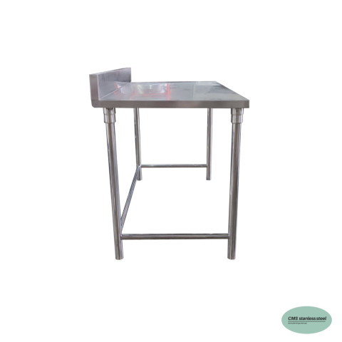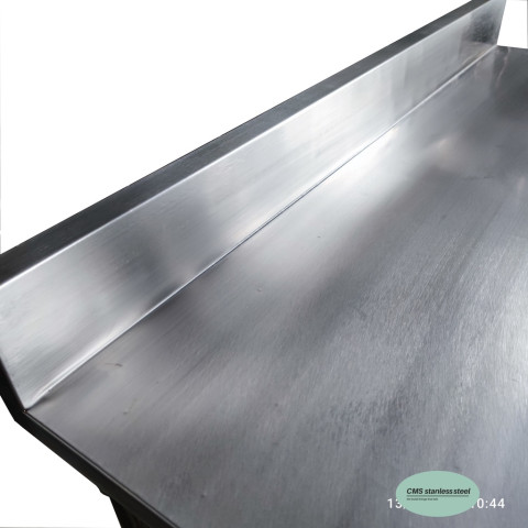 CMS โต๊ะสเตนเลส มีการ์ดหลัง ขนาด 60 × 110 × สูง 75 ซม. (การ์ดหลังสูง 10 ซม.) โต๊ะสแตนเลสงานครัว/งานเตรียมอาหารที่ออกแบบมาเพื่อความสะอาดและความทนทาน เหมาะกับร้านอาหาร ครัวกลาง โรงแรม คาเฟ่ โรงงานอาหาร หรือพื้นที่ที่ต้องการมาตรฐานความเรียบร้อยและทำความสะอาดง่าย ด้วยการ์ดหลังแบบพับขึ้นเป็นชิ้นเดียวกับผิวโต๊ะ ลดรอยต่อและช่องว่างที่สิ่งสกปรกสะสมได้ ใช้งานได้คล่องตัวและคุ้มค่าในระยะยาว