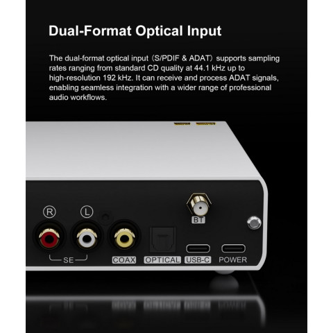 อินพุต: Coaxial / Optical / USB Type-C / Bluetooth