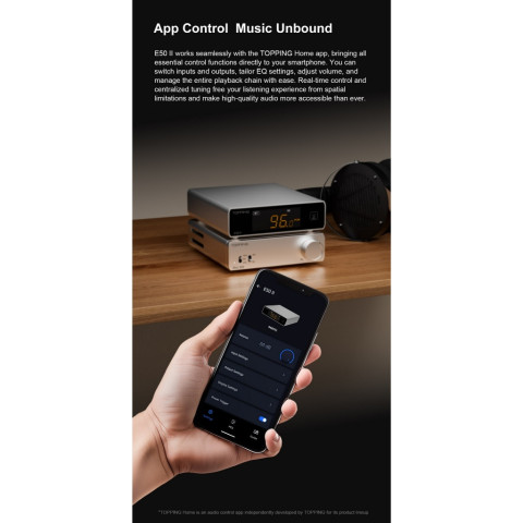 ใช้งานได้สะดวกยิ่งขึ้นด้วย TOPPING Home สำหรับควบคุมและปรับแต่งเสียง รวมถึง PEQ 10 แบนด์ ปรับความถี่ เกน และความกว้างแบนด์ได้ละเอียด พร้อมบันทึกโปรไฟล์เพื่อสลับใช้งานได้ทันที นอกจากนี้ยังมี ระบบสัมผัส และ รีโมทอินฟราเรด ให้ควบคุมระดับเสียงและการใช้งานได้คล่องตัว