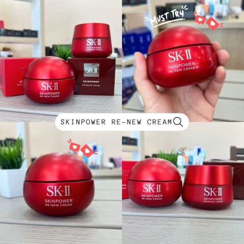 NEW ใหม่!! SK-II SKINPOWER RE-NEW Cream (Advanced Cream) ขนาด 80g ครีมบำรุงผิวหน้าสูตรปรับปรุงใหม่ เพื่อผิวดูแน่นกระชับ เปล่งปลั่ง และชุ่มชื้นยาวนาน เนื้อครีมนุ่มละมุน เกลี่ยง่าย ซึมไว ช่วยเติมเต็มความชุ่มชื้นอย่างเข้มข้น เหมาะสำหรับผู้ที่ต้องการฟื้นบำรุงผิวที่ดูแห้งกร้านให้กลับมาดูอิ่มฟูและอ่อนเยาว์