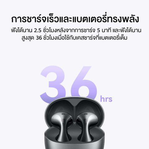 รองรับการชาร์จสูงสุด 5C ชาร์จหูฟังเต็มประมาณ 25 นาที (อ้างอิงผลทดสอบจากห้องแล็บ Huawei)