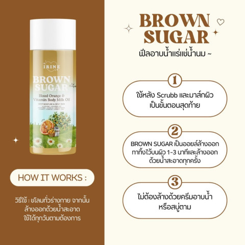 [สินค้าหมด] ออยน้ำนมกลูต้า Brown Sugar Blood Orange & Vitamin Body Milk Oil ราคา 9,999.00 บาท ออยน้ำนมบำรุงผิวกายเนื้อบางเบา เกลี่ยง่าย ไม่เหนียวเหนอะหนะ อุดมด้วยสารต้านอนุมูลอิสระจากสารสกัดส้มยูสุ ส้มสีเลือด และเปลือกส้ม ช่วยเติมความชุ่มชื้นให้ผิวที่แห้งกร้าน ฟื้นผิวให้แลดูเรียบเนียน สม่ำเสมอ และเปล่งปลั่ง เมื่อใช้เป็นประจำผิวจะดูสุขภาพดี นุ่ม และกระจ่างใสขึ้น