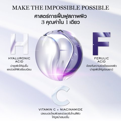 ก้าวสู่ยุคใหม่ของเซรั่มชะลอวัยประสิทธิภาพสูงจากแรงบันดาลใจศาสตร์การฟื้นฟูผิวของลังโคม โดยออกแบบให้ส่วนผสมสำคัญคงประสิทธิภาพสูงสุดในแต่ละเฟส และปล่อยพลังเมื่อกดใช้ในทุกครั้ง