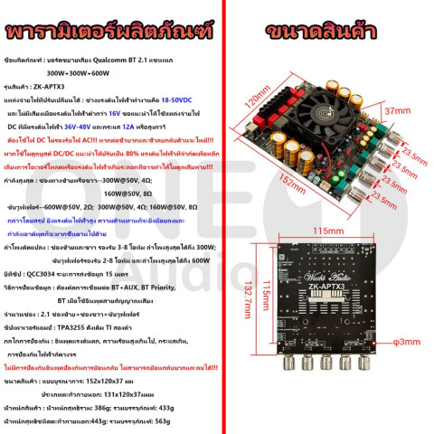 OneAudio แอมป์จิ๋ว ZK-APTX3 แท้ แอมป์ขนาดกะทัดรัดแต่พลังจัดเต็ม สำหรับชุดลำโพงบ้าน/คอม/DIY ให้เสียงแน่น ฟังเพราะ ขับได้ทั้งลำโพงคู่หน้าและซับวูฟเฟอร์ในบอร์ดเดียว ด้วยชิปภาคขยาย TI TPA3255 แท้ (2 ตัว) และบลูทูธชิป Qualcomm QCC3034 ระยะไกลถึง 15 เมตร เหมาะกับสายฟังเพลงที่อยากได้ “แรง + คุณภาพเสียงดี” ในงบคุ้มค่า