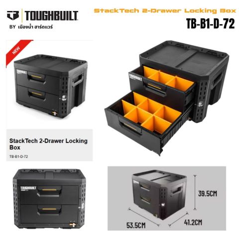 (พร้อมส่งในไทย) ToughBuilt รุ่น TB-B1-D-72 กล่องล็อค 2 ลิ้นชัก StackTech™ คือโซลูชันจัดเก็บเครื่องมือที่เน้นทั้ง “ความเป็นระเบียบ + ความปลอดภัย” ด้วยดีไซน์แบบ 2 ลิ้นชัก ช่วยแยกอุปกรณ์เป็นหมวดหมู่ หยิบใช้งานสะดวก เหมาะสำหรับช่างมืออาชีพ หน้างานก่อสร้าง งานซ่อมบำรุง หรือผู้ที่ต้องการกล่องเครื่องมือที่ดูดี แข็งแรง และจัดเก็บได้จริงจังในทุกวัน
