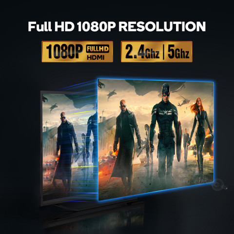รุ่นอัปเกรดพร้อมการถอดรหัส H.265 ช่วยให้การส่งภาพลื่นไหล คุณภาพดี และประหยัดแบนด์วิดท์ ส่งสัญญาณผ่านคลื่น 5G เพื่อแสดงผลบนทีวี โปรเจ็กเตอร์ หรือมอนิเตอร์ได้อย่างง่ายดายแบบ Plug & Play ไม่ต้องใช้แอป ไม่ต้องพึ่ง Wi‑Fi/Internet ที่บ้าน